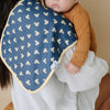 Copper Pearl burp cloths come in a generous 21x10 inch size, providing greater shoulder coverage (and less outfit changes) for Mom and Dad.